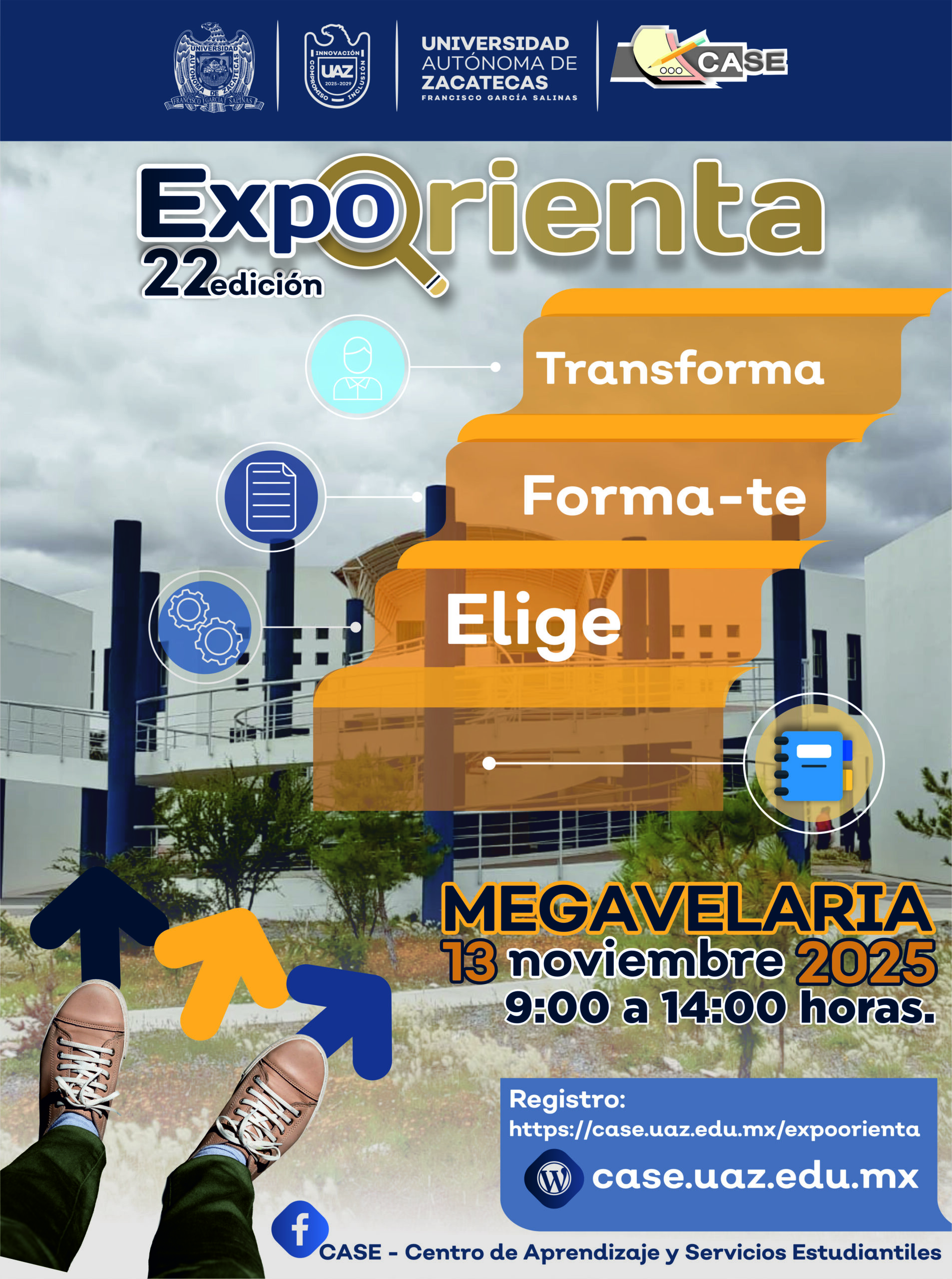 La ExpoOrienta “Elige, Forma-Te y Transforma”, tiene como objetivo mostrar la oferta educativa del Estado de Zacatecas y la región, tanto públicas como privadas a los estudiantes de nivel medio superior con la intención de que conozcan, comprendan, analicen y comparen las diferentes opciones educativas y cuenten con herramientas para una mejor decisión de su futuro profesional.
